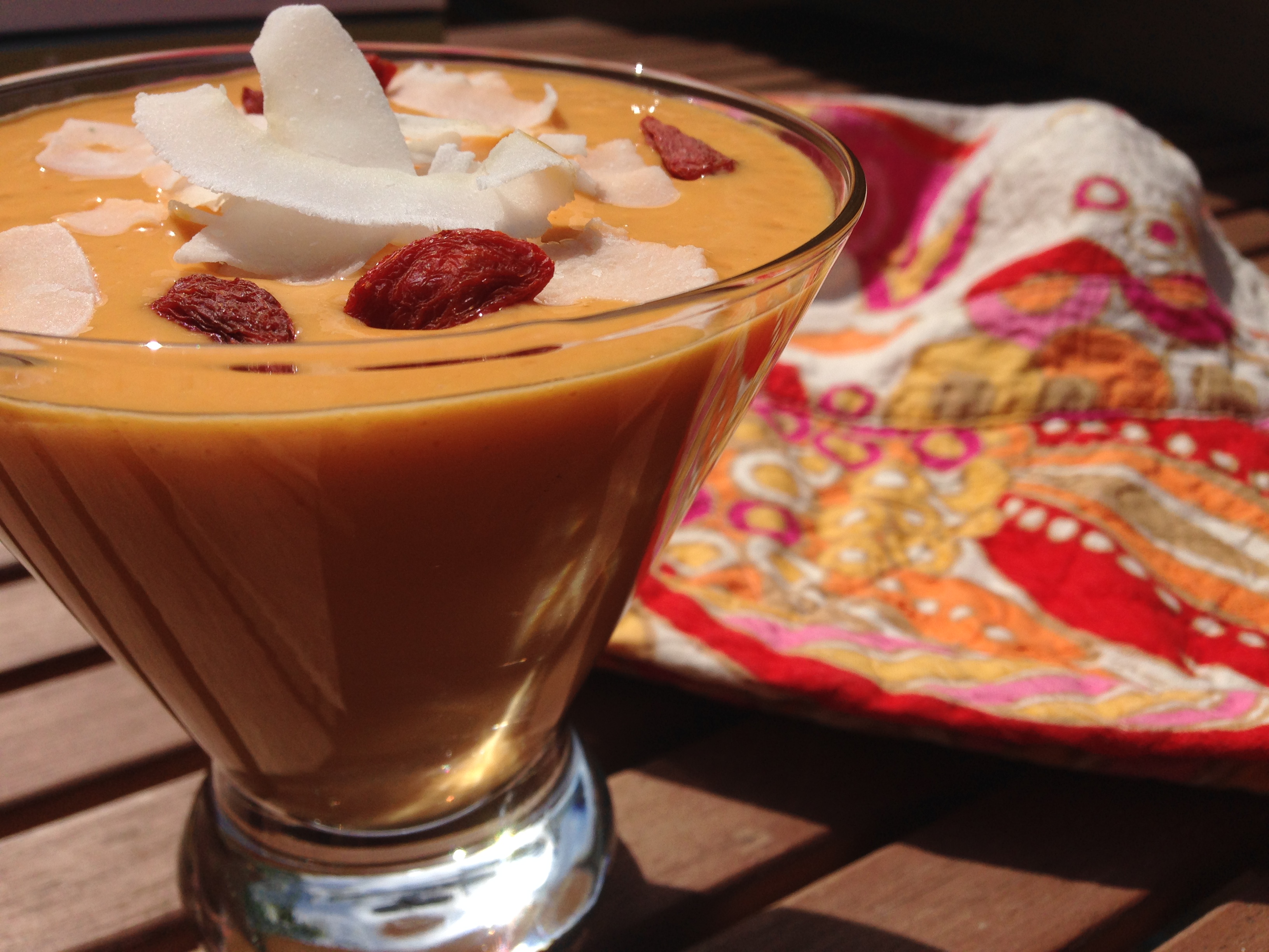 4. Garnish with a few goji berries and shredded coconut.
